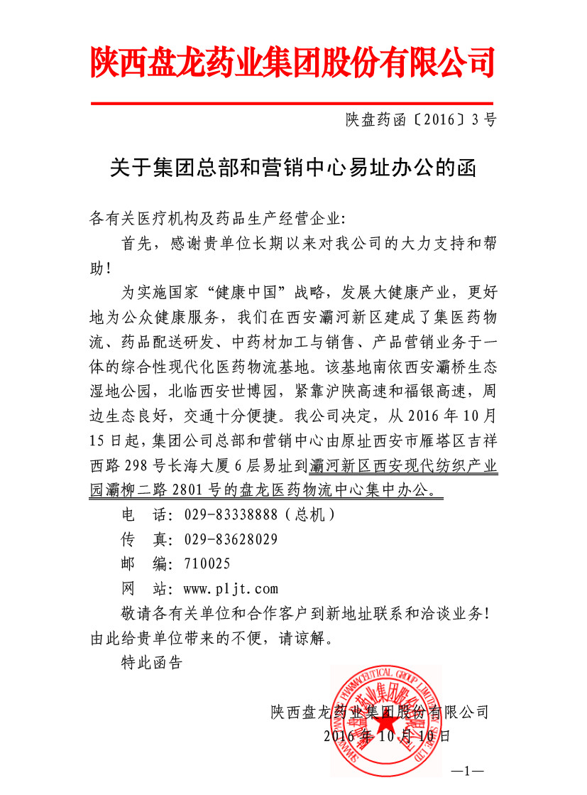 关于2121非凡总部和营销中心易址办公的函